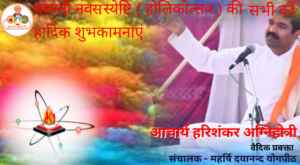 वासन्ती नवसस्येष्टि ( होलकोत्सव ) ऋतुराज वसन्त विराज रहा, मनभावन है छवि छाज रहा। बन-बागन में कुसुमावलि की, सुखदा सुषमा वह साज रहा ॥ यव गेहुँ चना सरसों अलसी, सब ही पक आज अनाज रहा। यह देख मनोहर दृश्य सभी, अति हर्षित होय समाज रहा ॥ उपलक्ष्य इसे करके जग में, शुभ होलक-उत्सव हैं करते। …
