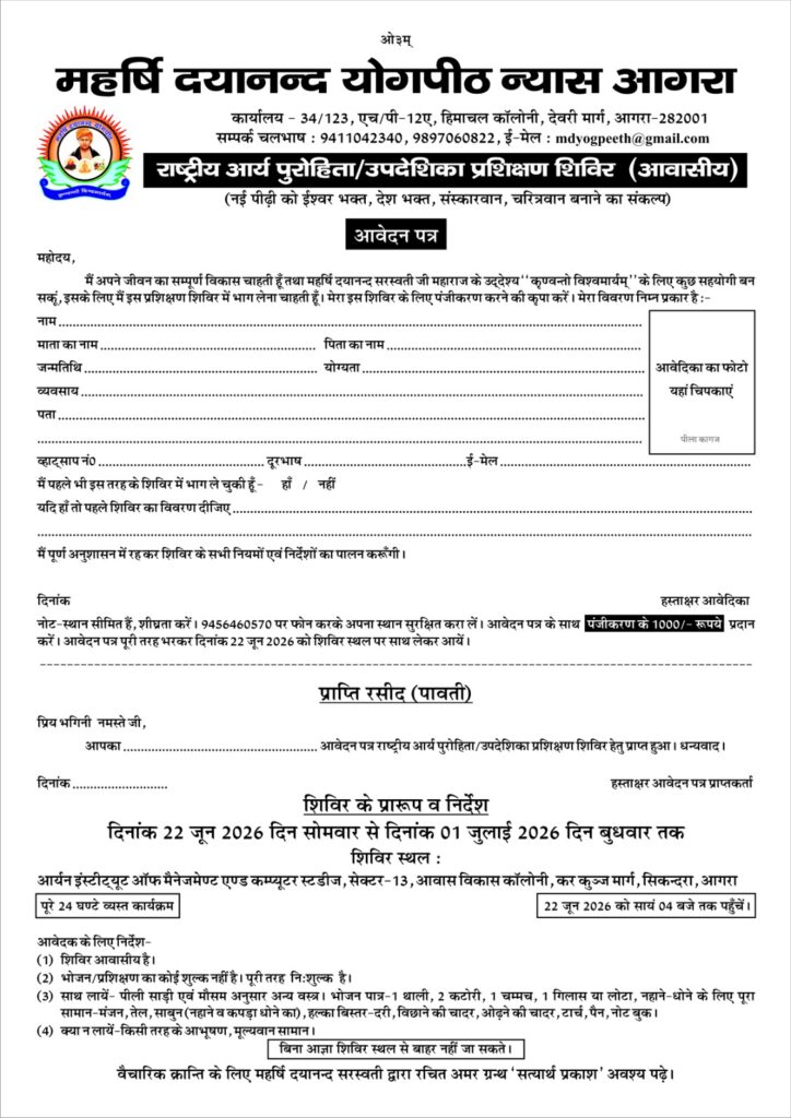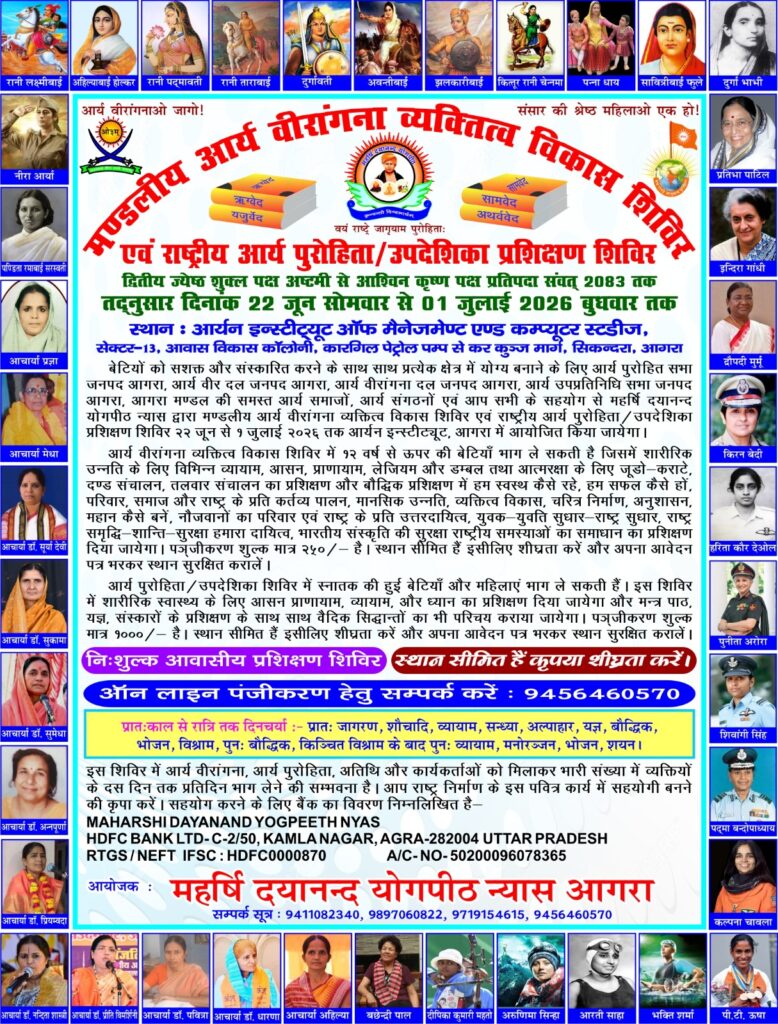 आगामी कार्यक्रममण्डलीय आर्य वीरांगना व्यक्तित्व विकास शिविर एवं राष्ट्रीय आर्य पुरोहिता / उपदेशिका प्रशिक्षण शिविर Maharshi Dayanand4 hours ago01 mins मण्डलीय आर्य वीरांगना व्यक्तित्व विकास शिविर एवं राष्ट्रीय आर्य पुरोहिता / उपदेशिका प्रशिक्षण शिविर Post navigation Previous: यज्ञ विधि पुस्तक विमोचन Leave a Reply Cancel replyYour email address will not be published. Required fields are marked *Comment * Name * Email * Website Save my name, email, and website in this browser for the next time I comment.