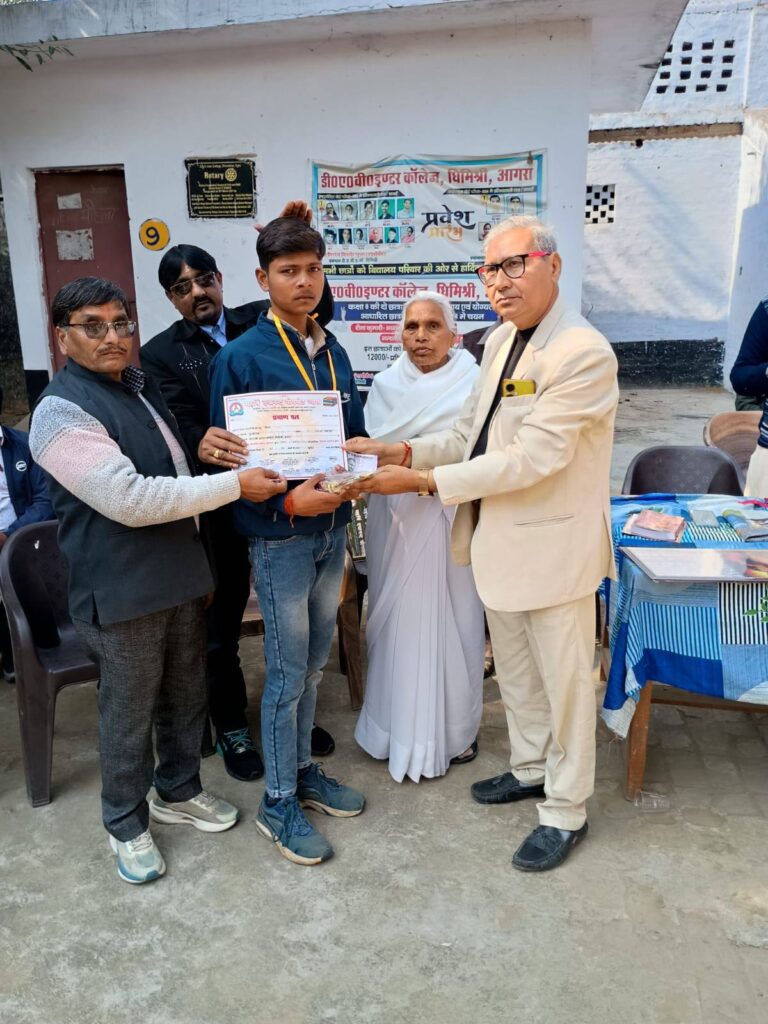 डी०ए०वी० इण्टर कालेज धीमिश्री जनपद आगरा में पुरस्कार वितरण