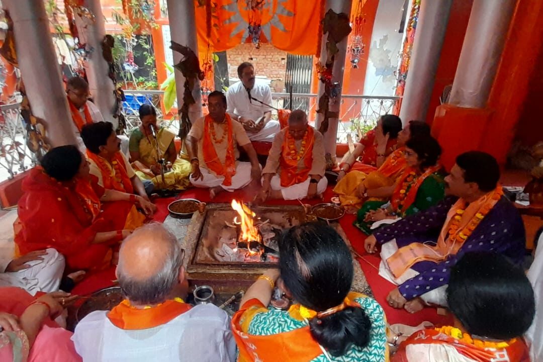 समिधाचयन वेदी में करें। पुनः—